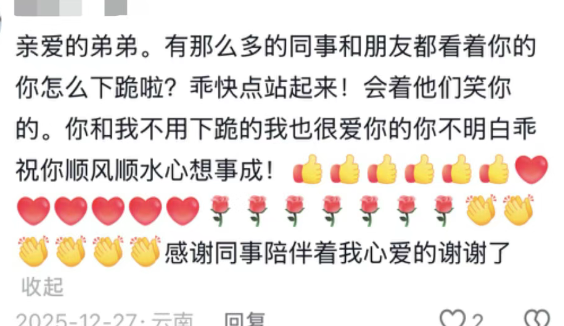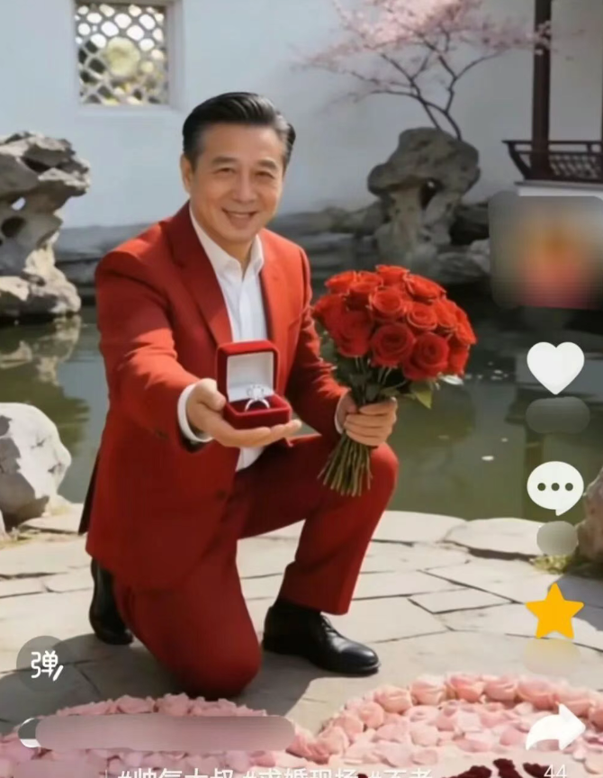 最骚的操作是,他们还会“下跪求婚”——单膝跪地,手捧一束永远送不出去的虚拟玫瑰,眼神深情得能腌泡菜。