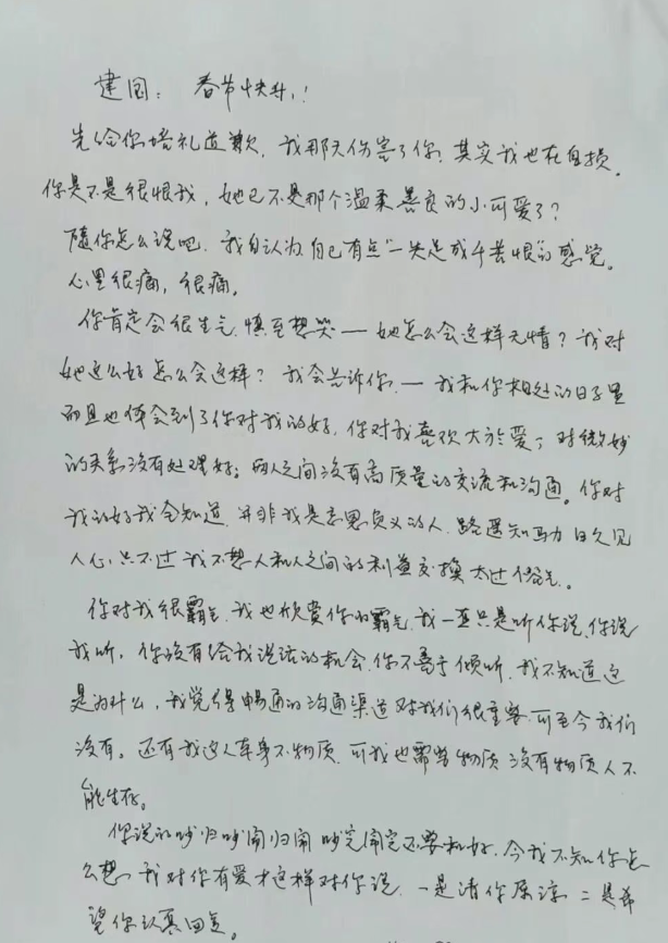一位奶奶对数字人“建国”的手写情书